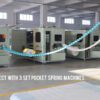 This 1-3 version fully automatic pocket spring assembly machine can connect with 1pc, 2pcs or 3pcs pocket spring machine (to produce springs) at the same time. Our machine equipped with 3 channels can be selected to match 3 high-speed pocket spring coiling machine produces at the same time.